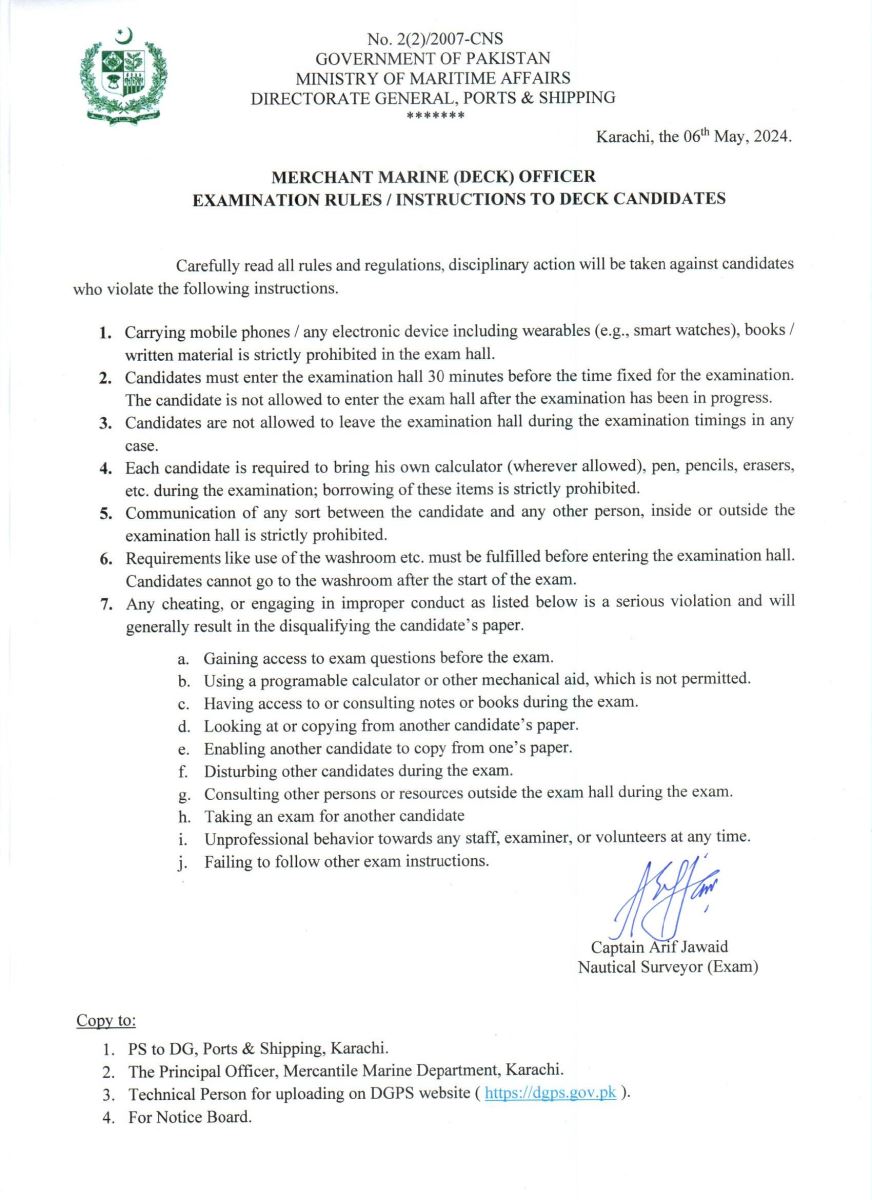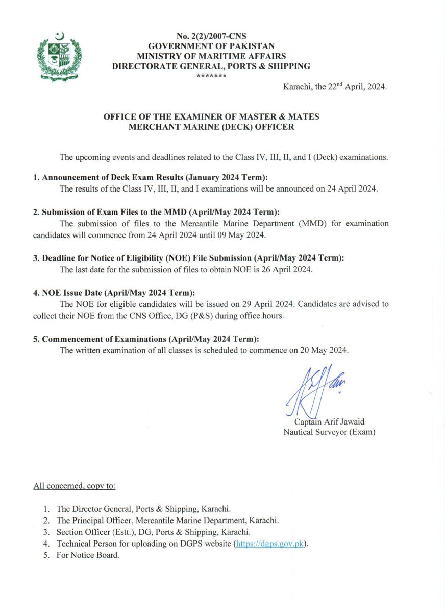 SIGNAL EXAMINATION FOR DECK OFFICER CLASS II (03 JUN 2024 AT 1000 hrs)